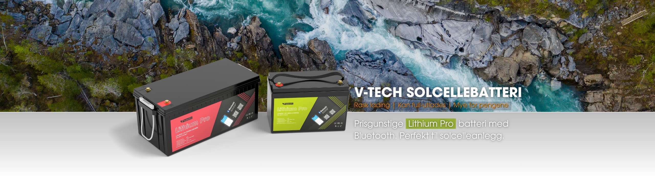 110W solcellepakke med 100Ah V-Tech Lithium batteri og 10A regulator. Perfekt for deg som trenger strøm til lys, telefonlading etc.