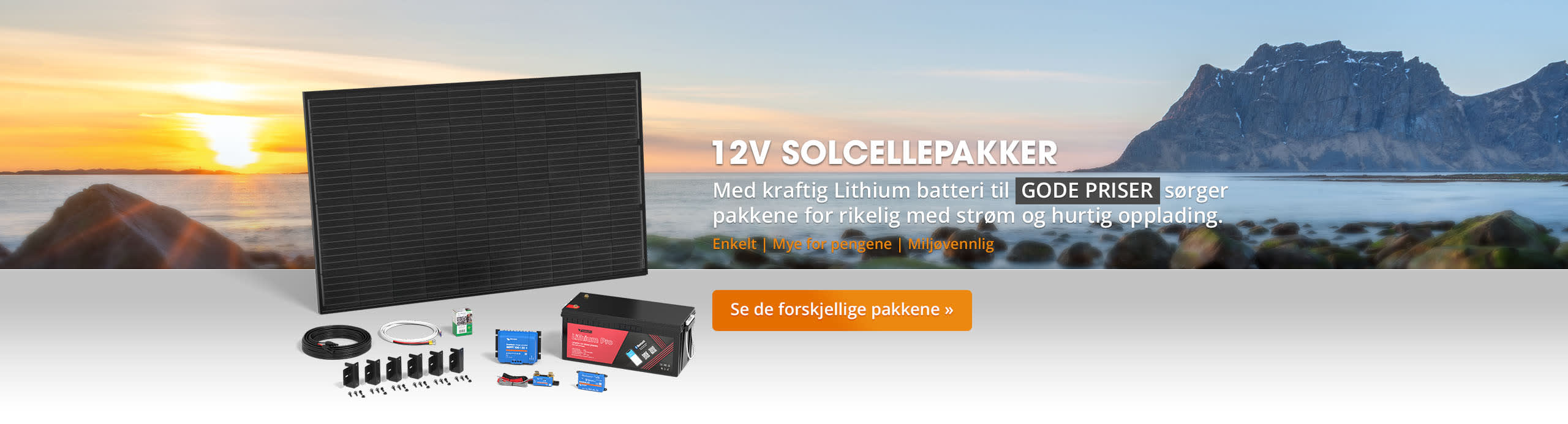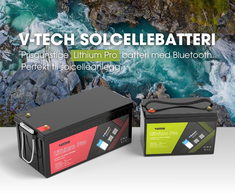 110W solcellepakke med 100Ah V-Tech Lithium batteri og 10A regulator. Perfekt for deg som trenger strøm til lys, telefonlading etc.