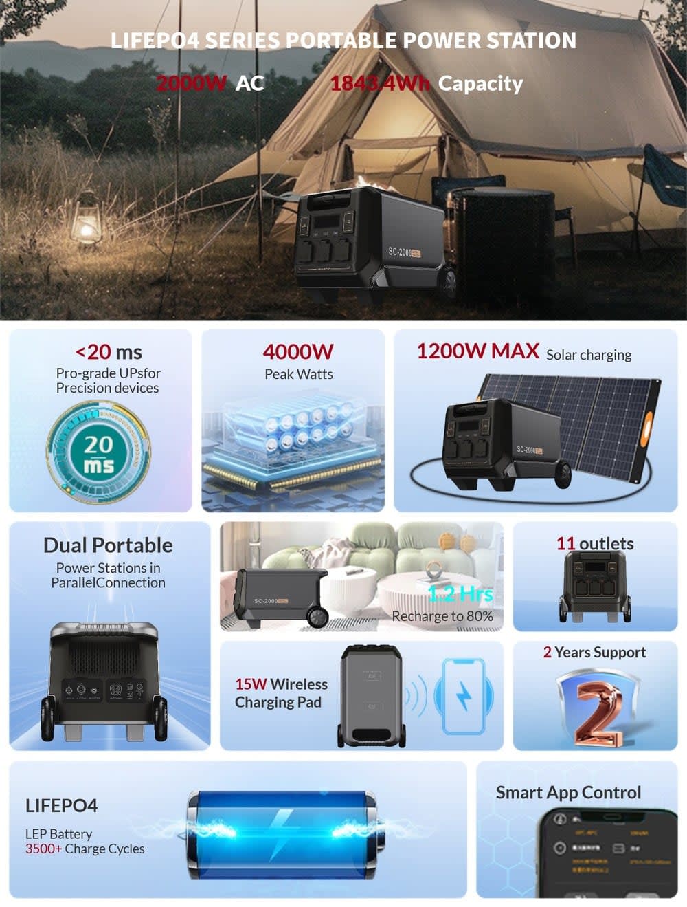 SENCI Lithium 1843Wh Power Station 2000W (4000W) inverter