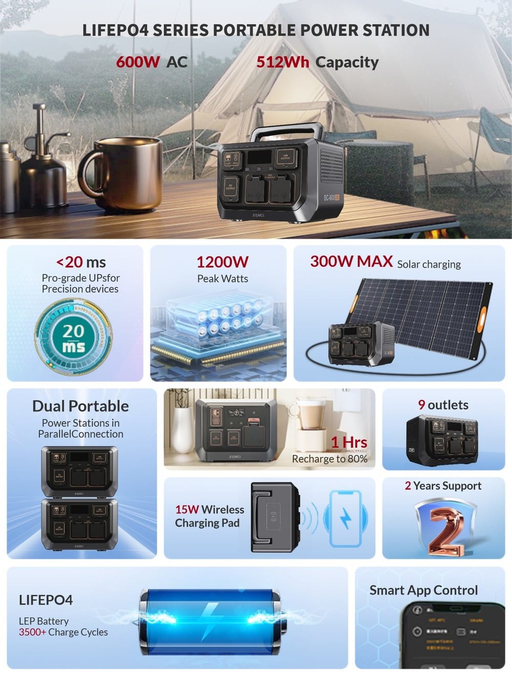 SENCI Lithium 512Wh Power Station 600W (1200W) inverter