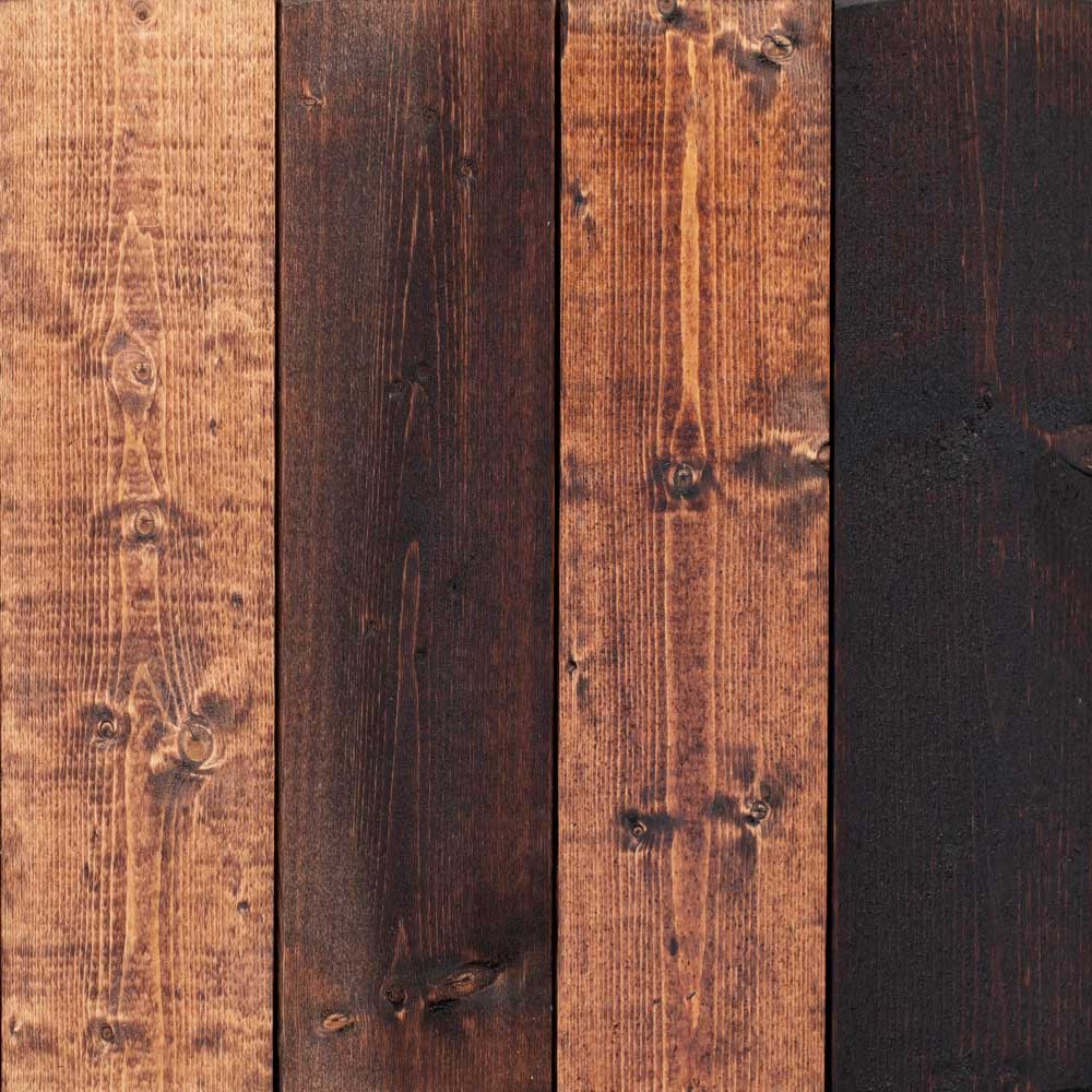 UNDERLAG: Uhøvlet treverk gir betydelig mørkere og mattere farger enn høvlet eller laftet treverk. Tidligere behandlede flater vil ved neste påstrykning få en mørkere farge.